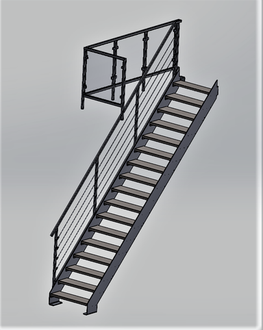 - Stahlwangentreppe gerade mit Geländer